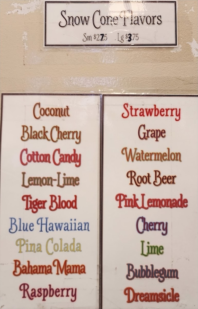 Snow Cone Flavors